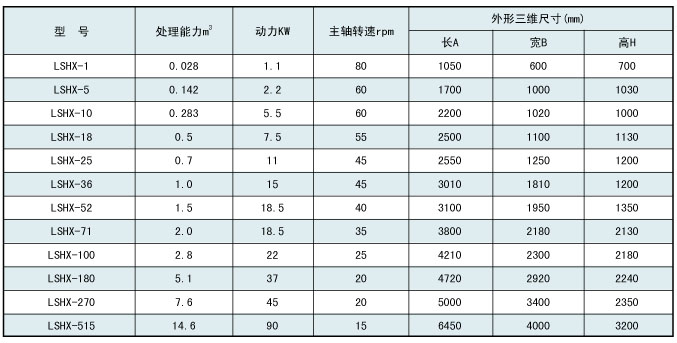 1、动力随物料特性变化而变化,上表中的动力是根据物料比重为512kg/m3,并且无流动性计算出来的。机器装物料的最大重量(kg)=工作容积(m3)×512kg/m3。 2、标准机型无夹套、无喷液装置、如需要,订货时须说明。 |