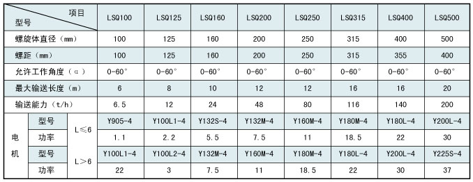 | 注:输送能力按输送物料的堆积密度P=1.2g/cm3计算。 |