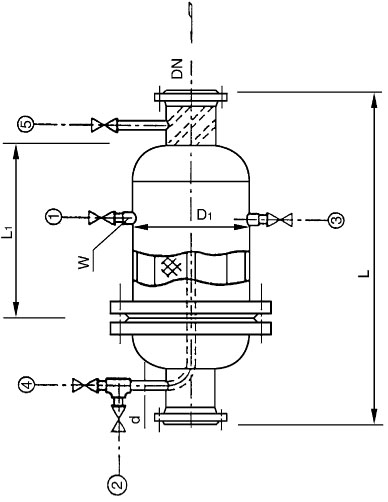 | 注:①物料进、出口及冲洗液接管安装不受方位限制,卧、立式安装均可; ②当本过滤器放空口用丝堵密封时,螺纹尺寸为W,*为放空口用阀门连接时的接管尺寸 |