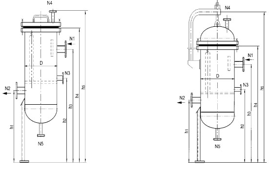 | 注:1.滤芯数指折合标准型滤芯(10”长)数目。 2.本图适用于DN≤500,由于工艺参数各不相同,因此,在订货时,我公司将按实际的工艺参数作适当修正。 |