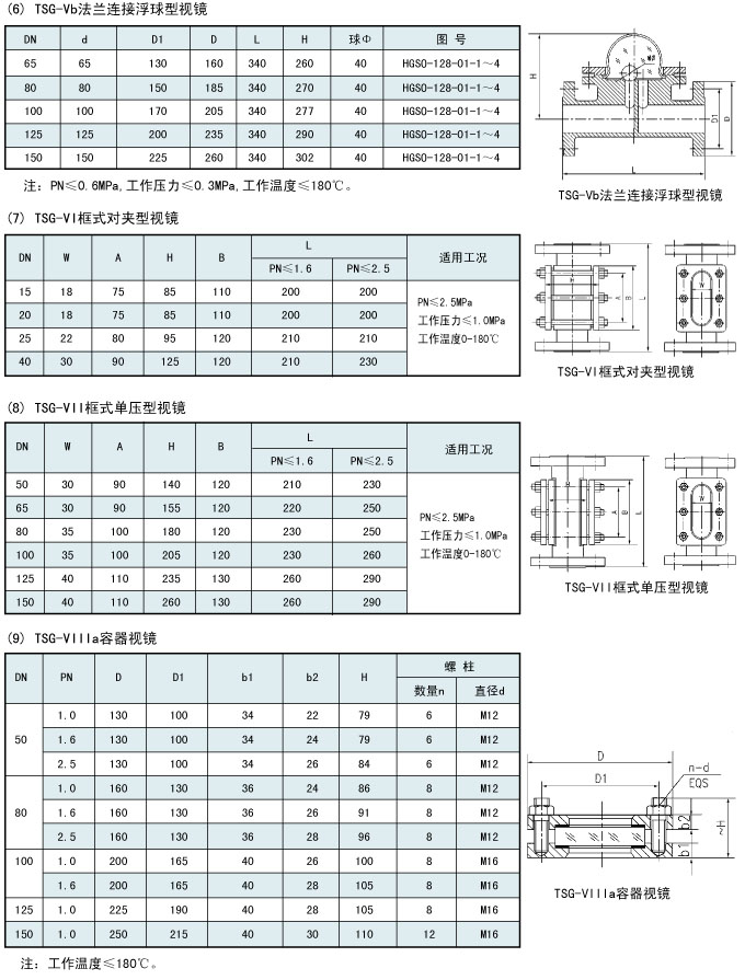 视镜是工业管道装置上主要附件之一,在石油、化工、医药、食品、造纸等工业生产装置的管道中,能随时观察管道中液体、气体、蒸汽等介质流动及反应情况,起到监视生产、避免生产过程中事故发生的作用。