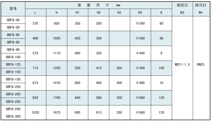 | 示例:SBFQ100-1.6/200S表示:公称压力1.6 MPa,材质为不锈钢,滤网目数200目/英寸,公称直径100mm的气体过滤器。 |